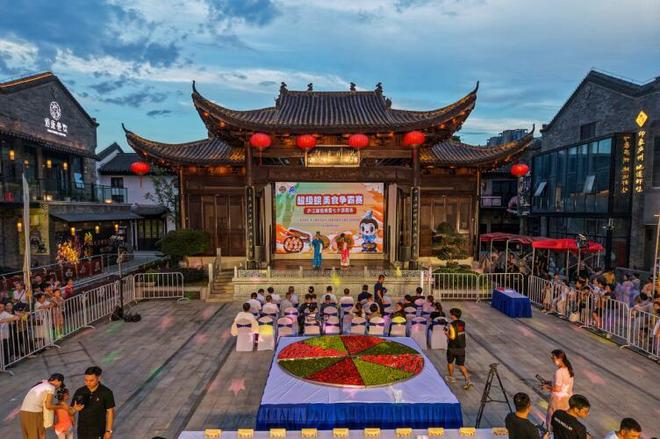 据悉,庐江水西门文化街区全域商户推出“超级皖”特惠产品及折扣助力本次踢馆赛,当晚消费额近50万元。伴随着本次踢馆赛结果的揭晓,现场由龙虾、百花菜等庐江特色美食组成的巨型拼盘,供游客免费品尝,让大家在“大饱眼福”之后,真正实现“大饱口福”,也为这场七夕文旅盛宴画上了圆满句号。